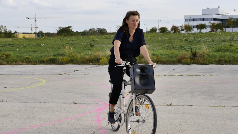 RAD Performance CITY OF NOISE presents a new composition format for the bicycle, realized in motion and with a variety of mobile speakers and wheels. The experimental field is called Sonic Environment and Sound Research. Fixed-media compositions of different sound artists*, the choral movement of the performers* on the bicycle as well as the dynamics and distance between the moving sound sources create unique soundscapes for the audience. Templates for the choreography are, among other things, historical cycle circle dance figures and worker cyclist formations.