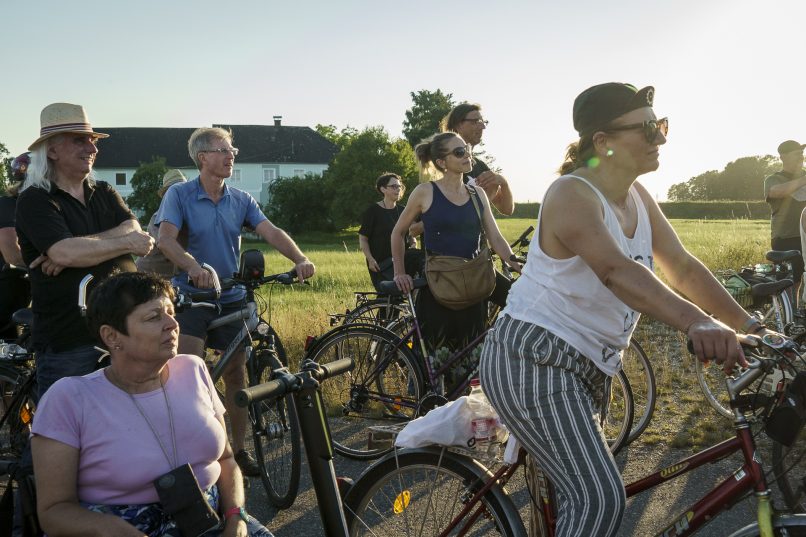 Centriphery invites the audience to an exciting cycling performance, which develops its own perspective on the region and the landscape of the Machland, navigating various locations and landscapes and making them into a stage. The bicycle, wheelchair, and other mobile vehicular devices will simultaneously become actors and instruments. Regional traditions such as “Ratschen”, which is recognized as the immaterial cultural heritage of Upper Austria, will also be part of the performance, as the examination of mobility and the body, confrontations with passersby, and audiovisual art in public space that will be made accessible and experienced by many different people at once. The choreography with which the cyclists will move through the landscape will connect and make the intersections between performance, sound art, media art, and bicycle history dynamic.