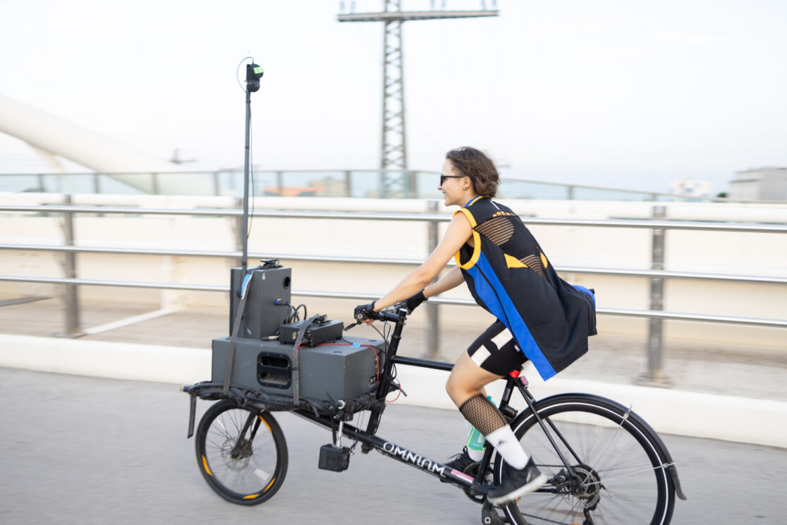 Musical works by selected artists, the choral movement of the performers on the bike, and the dynamics and distance between the moving sound sources create unique soundscapes for the audience. The acoustic, urban space complements, overlays, and expands the electronic composition. The bicycle becomes an artistic medium at the interface between concert, performance, and sound art.