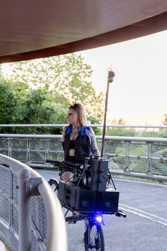 Conny Zenk is a transdisciplinary artist who combines video, performance, and sound art. Her work explores, interrupts, and renegotiates her findings by engaging directly with communities in the context of performance, cycling, and experimental music. In this way, she creates languages and spaces to expose and subvert systems of power. Since 2015, she has curated the participatory event series RAD Performance, which took place in the context of CITY OF NOISE with Viennese record labels. Since then, numerous projects in the field of sound art, city history, and feminism have been realized with bicycles in public spaces. With projects such as sound x tracks, VELODROME, and Soundrides, she has been working on a new music format, developed as an innovative possibility for concerts in public spaces.