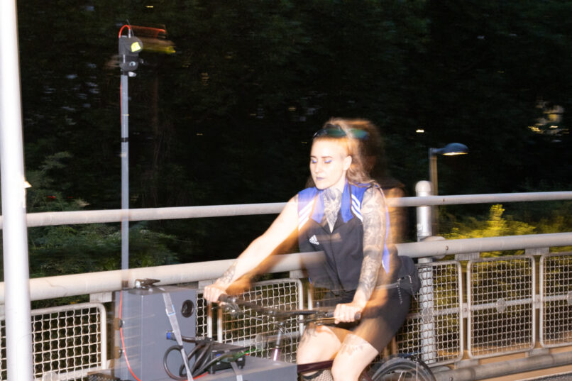 SPIRAL BIKE invites you to explore sound spheres in which perception, sound effects and compositional structures merge into a panoramic listening journey. As the sound rotates and circles around the audience, the bicycle becomes more than just a means of transportation — it transforms into a vehicle, an instrument, and an actress all at once.