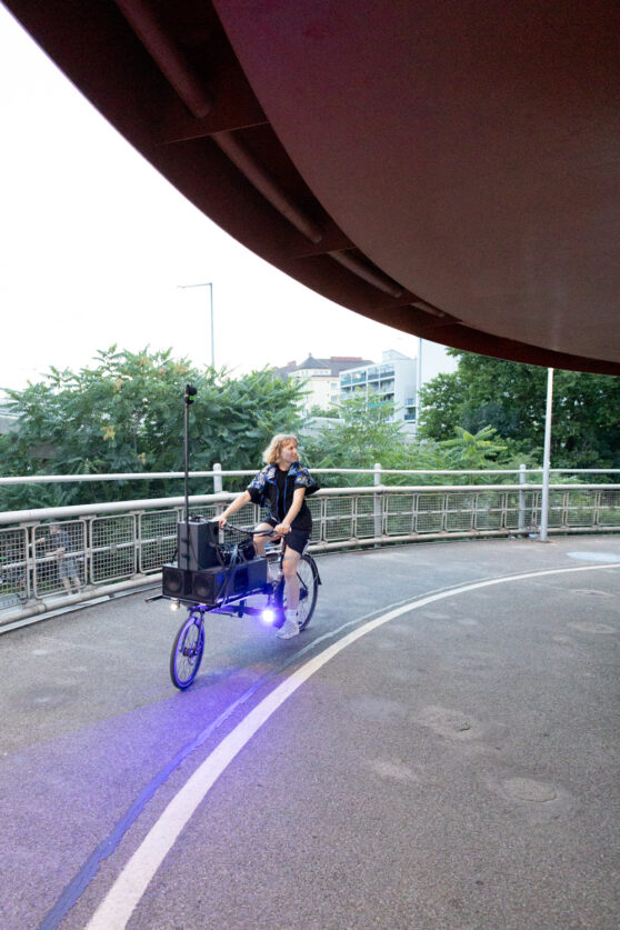 Bike spirals, positioned along iconic bridges, become the backdrop for concerts and performances, seamlessly integrating sound art into urban spaces. RAD Performance develops an outdoor sound system perfectly adapted to the architecture of cargo bikes. This system transforms public spaces into experimental performance arenas for multi-channel compositions.