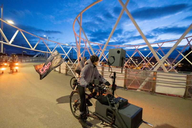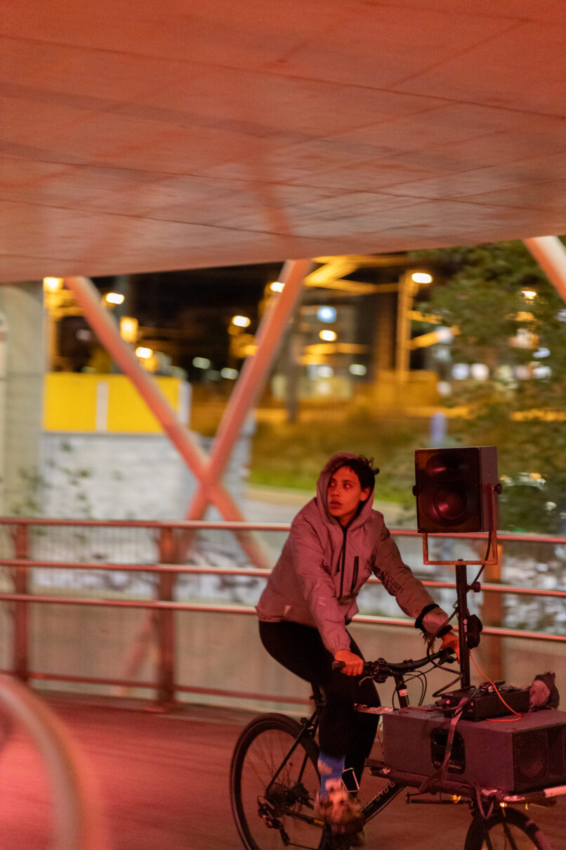 SPIRAL BIKE engages with the city’s inherent soundscape, playfully composed with the urban surroundings, continuity, speed, and acceleration. We seek to reclaim public spaces by using sound as a medium and a vehicle for collaboration, challenging power structures that shape our cities.