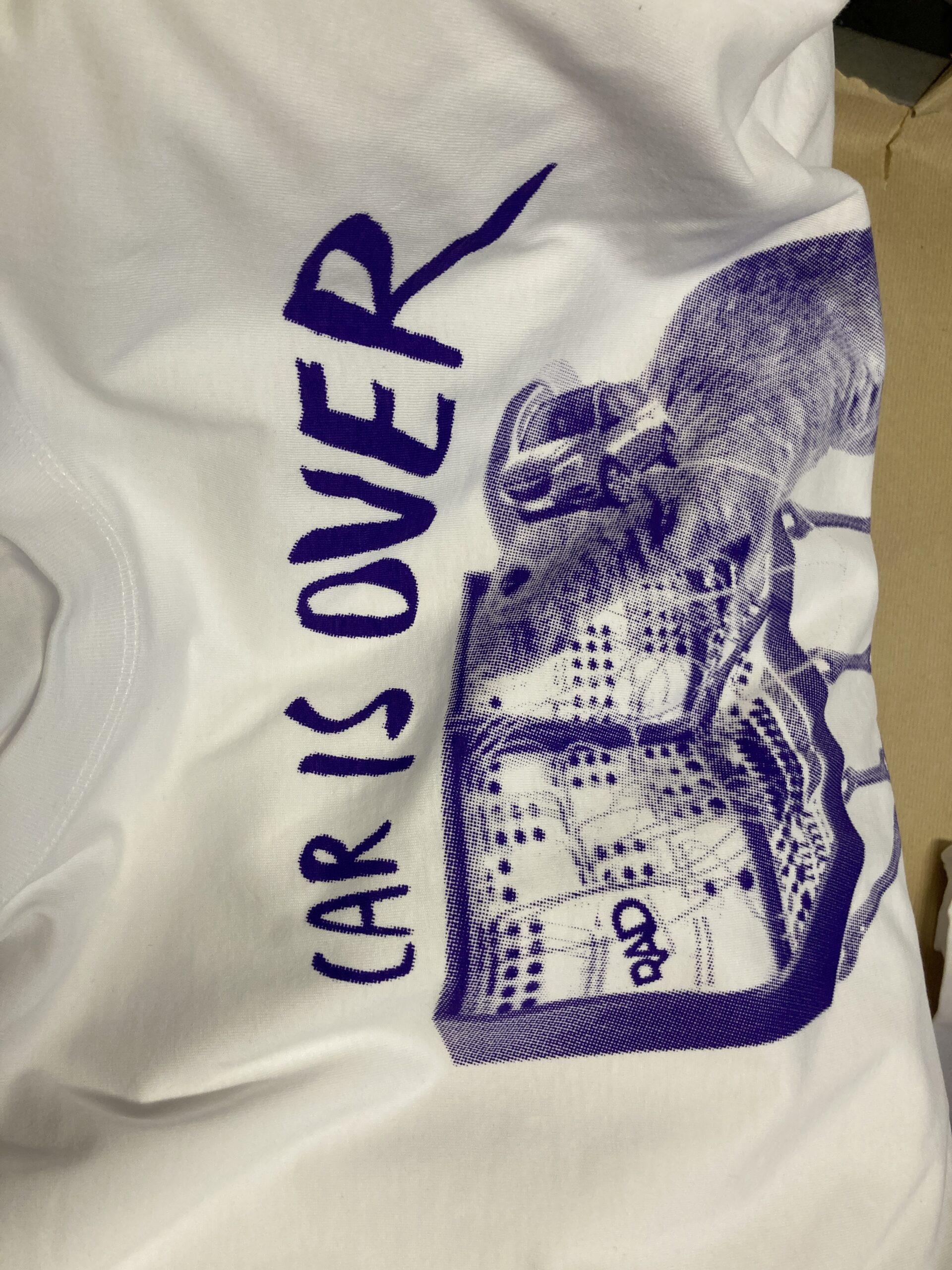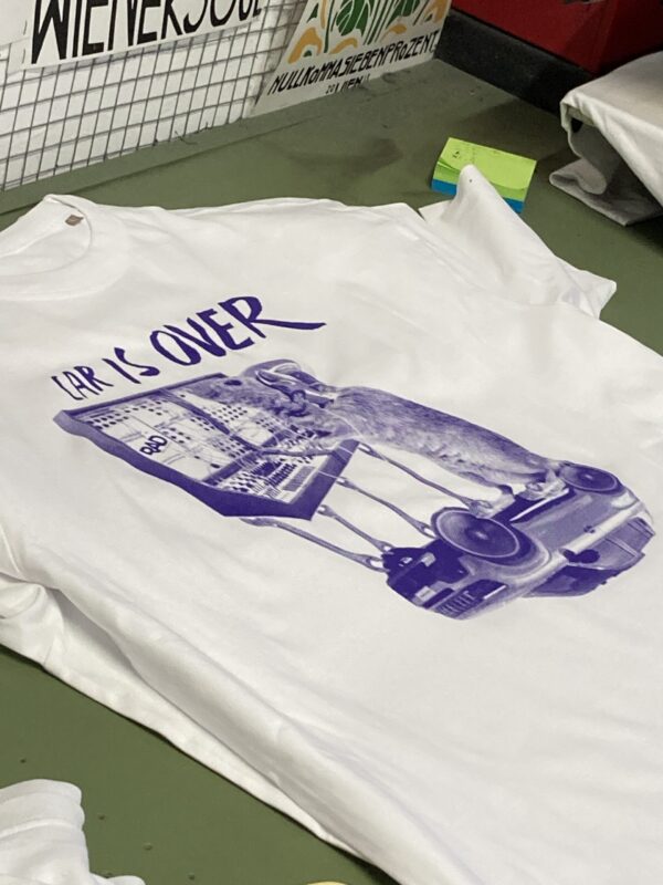 Ein Statement auf Stoff: Das CAR IS OVER T-Shirt erscheint als limitierte Edition von nur 30 Stück und erinnert an die diesjährige Ausgabe von SPIRAL BIKE car is over. Die Illustration stammt von Marie Vermont, gedruckt wurde lokal von Wiener Unart.