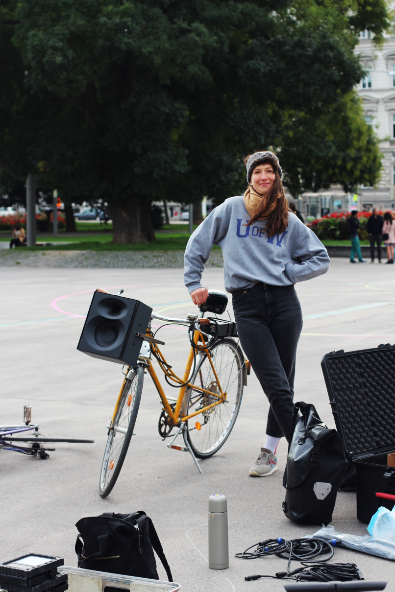 Eine Choreographie entsteht, die sich durch die wechselnden Positionen der Radfahrer*innen konsequent im Raum verändert, durch die Stadt bewegt und den Raum dynamisch integriert. Können Methoden der Klangbearbeitung, wie Sampling, Looping und Fades, auf das Fahrrad bzw. die Bewegung übertragen werden? Welche klanglichen Charakteristika sind für Bewegungsstrukturen dieser Art notwendig? Wie können diese für zukünftige musikalische Umsetzungen allgemeingültig beschrieben werden? Welche neuen Notationsformen ergeben sich aufgrund der Dynamik und Distanz zwischen Klangquelle und sich der auf dem Fahrrad in einer bestimmten Geschwindigkeit befindenden Critical Mass?