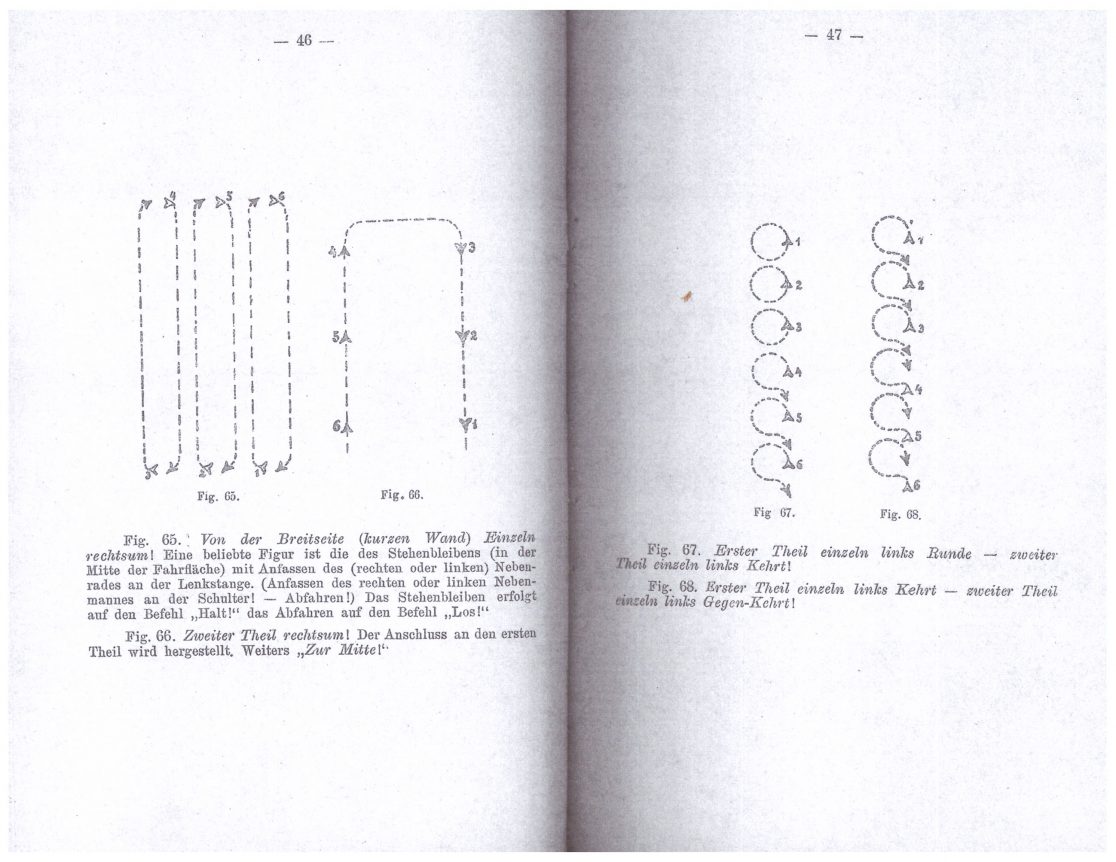 Das künstlerische Team bestehend aus der Medienkünstlerin Conny Zenk, der Radreigen-Expertin Petra Sturm und der Komponistin Rahel Kraft und Veronika Mayer, transformiert Zeichnungen bzw. grafische Formationen von Josef Adametz zu klanglichen Partituren. Radreigen war eine um die Jahrhundertwende populäre Radkulturform, in der Tanz-, Turn- und Paradeelemente mit dem Rad umgesetzt wurden. Ausgeübt wurde das Reigenfahren u.a. in Turnhallen oder auf Plätzen in ganz Wien. Originale Skizzen und Zeichnungen von Radreigenanordnungen werden auf ihre musikalischen Spielbarkeiten untersucht und sind das Ausgangsmaterial für eine grafische Notation. Im Projekt wird eine Übersetzung dieser Formationselemente in experimentelle und elektroakustische Musik versucht. Formale und lineare Strukturen wirken in die Musik ein und umgekehrt, als Transmissionsvehikel für diesen Prozess dient das Fahrrad. Das relationale Spiel mit Körpern, Formationen, Routen, Rädern und Musik ergibt eine eigene visuell-akustische Choreographie.