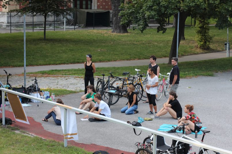 Reigenfahren war eine um die Jahrhundertwende populäre kollektive Tanzform für das Fahrrad. In Anlehnung an ein historisches Radreigenschulbuch erarbeiten wir gemeinsam mit den Workshop-Teilnehmer*innen neue schwungvolle und inklusive Formationen. Let´s Dance your Bike!