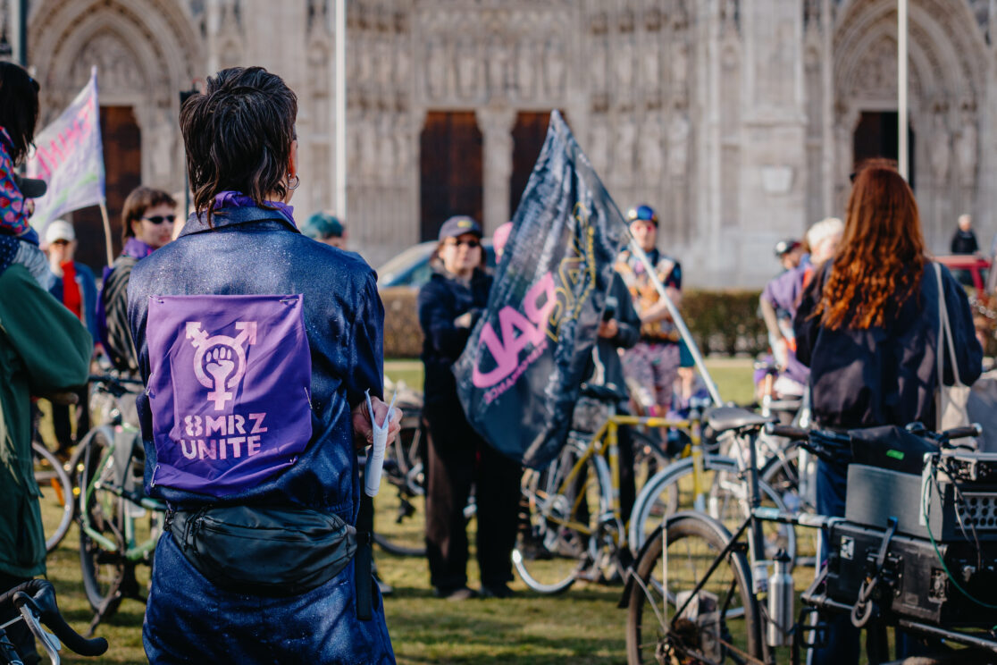 Jedes Jahr am 8. März gehen wir auf die Straße, um auf unsere feministischen Kämpfe aufmerksam zu machen. Wir beanspruchen Raum und lenken die Aufmerksamkeit auf die strukturellen Ungleichheiten, die FLINTA-Personen und alle Personen betreffen, die nicht in eine weiße patriarchale, cis- und heteronormative Gesellschaft passen.