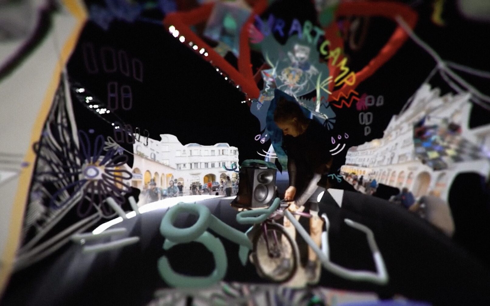 Conny Zenk is a media artist working at the intersection of performance, video and sound in the context of urban architecture, feminism and the city. Their working method is transdisciplinary and artistically explorative using digital and analog interfaces, vehicles, and media. In 2017, they started the participatory event series RAD Performance. They have organized Night Rides and Art Rides (Art Ride X) since 2014, which took place as part of CITY OF NOISE with Viennese record labels. Entitled Dance your Bike! she is developing a new composition format for the bicycle, as part of an Artistic Research Pilot Project at the University of Music and Performing Arts Vienna. Since 2020, they have been working on a new music format such as Soundrides in public space. Conny Zenk has been working as an artist in the field of Visual Music since 2007. They are a visual member of the band VENTIL and a synth-bike musician with CyberHypercycle.