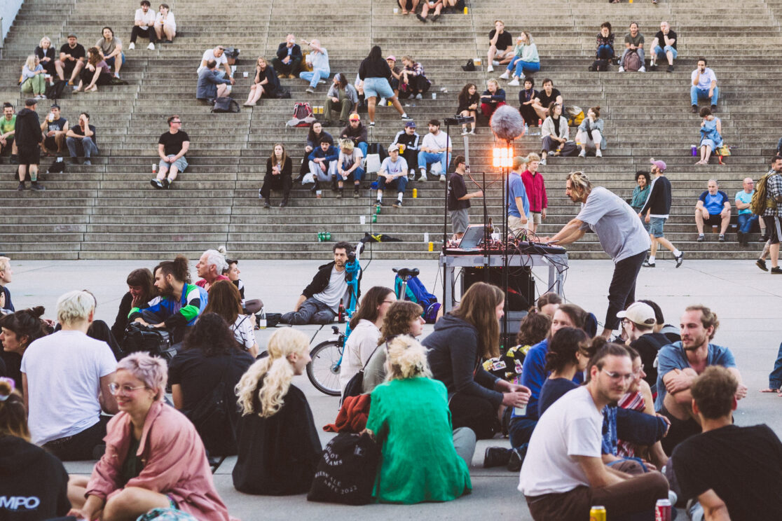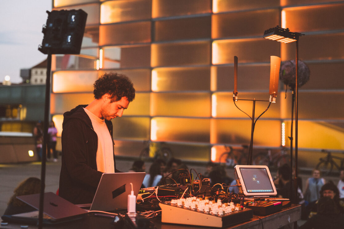 Outside Eye focuses on narratives such as continuity and acceleration through acoustic and visual compositions and live performances. Their main work involves creating a language of improvisation between the body, (digital and physical) spaces and movement-based sound art. Using analog music processing, they create abstract elements such as oscillating pulses and granular flickers, as well as massive drones and stroboscopic bursts. Outside Eye play with the concept of perception and what can be heard in motion. Acoustic experiments in public spaces and participatory performances form the starting point of their artistic practice.
